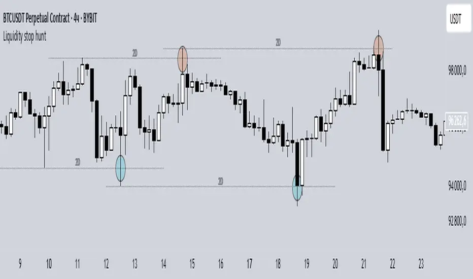 - Marks levels where "liquidity sweeps" (fakeouts) often happen.
