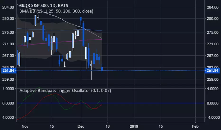 This is based off of Ehler's Bandpass Filter system (link below slides 15-17). I then used Ehler's methods for finding the dominant cycle to automatically input the dominant cycle to the length. Essentially Ehler runs a band pass with a given period to detrend the price data and highlight a cycle with the given frequency(length). This represents the In phase cycle. Ehler then creates the trigger line by taking the one bar momentum of the In Phase line, multiplying by 2Pi and then using this to create a 60 degree leading signal. The triggers are crossovers of the In Phase and Lead lines. You can also use conservative signals by waiting for the In Phase line to trend in the direction of the trigger crossover as well.