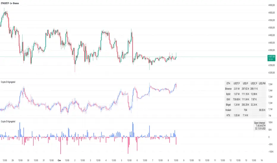 Conclusion: Crypto OI Aggregated is a convenient and powerful tool for cryptocurrency derivatives traders. It enables tracking of OI dynamics across multiple exchanges simultaneously, detecting imbalances between contracts, and identifying signals that are not visible when analyzing a single exchange.