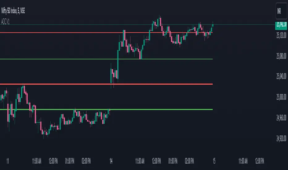 he AOC V1 indicator is designed to plot up to six customizable horizontal price levels on a chart with display options and label customization. This indicator is helpful for marking support (S1, S2, S3) and resistance (R1, R2, R3) levels, often used by traders to analyze market behavior.