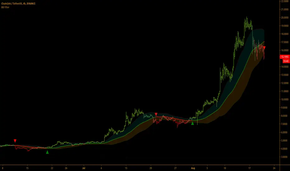 The filter works great when the price closes above/below upper/lower bands with continuation on next bar. It is definitely useful to have this filter along with other indicators to get early glimpse of breach/fail of bands on candle close during BB squeeze or based on volatility.