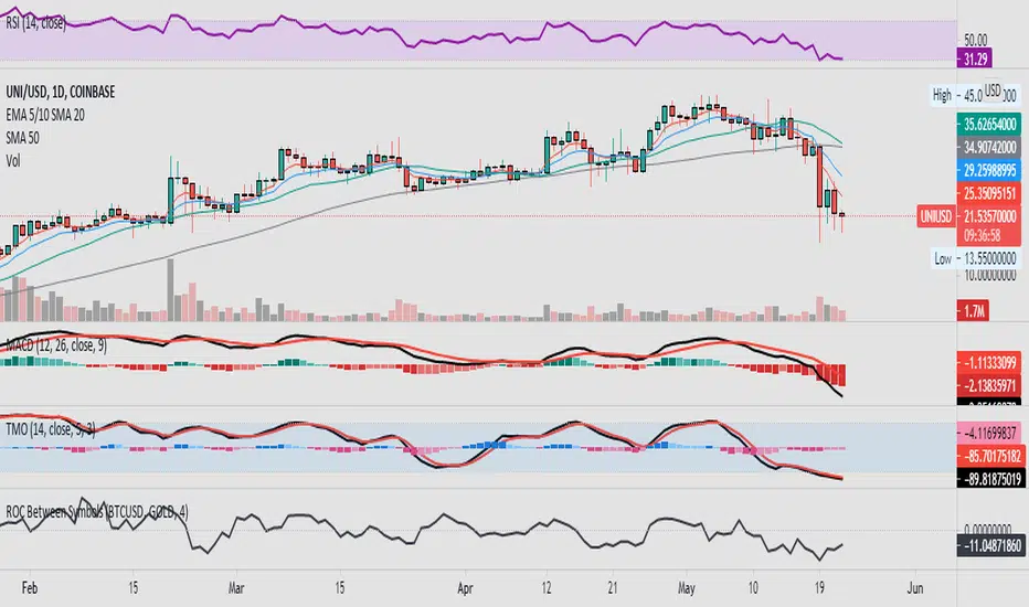 This ROC comparison tactic was documented and described on YouTube channel "Figuring Out Money" in an interesting study between Bitcoin and Gold prices on a weekly timeframe.