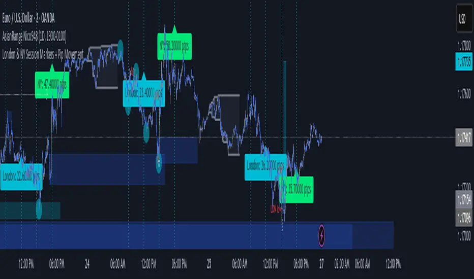 London & NY Session Markers + Pip Movement