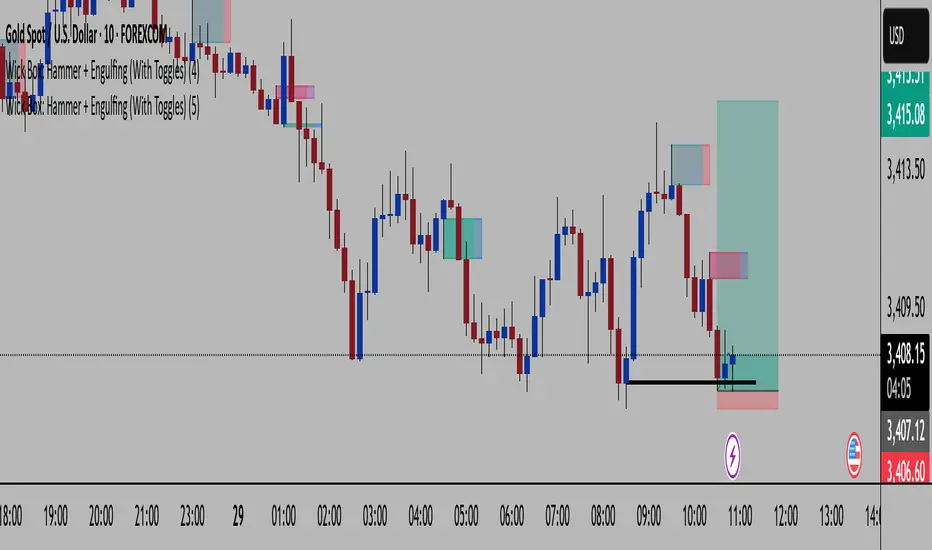 wick boxes and hammer box drawings for engulfing and hammer candles bullish and bearish