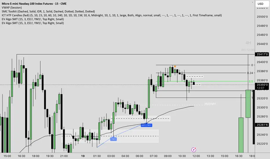 EV Algo SMT is a multi-timeframe SMT divergence indicator that compares price action between two correlated markets.