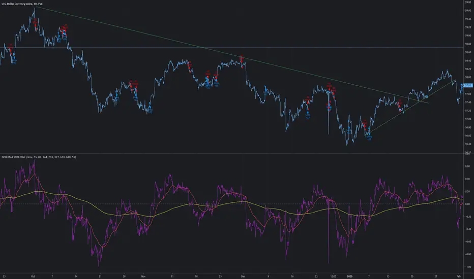 This strategy uses tradingview's built-in "Detrended Price Osciilator" ( DPO )indicator script.