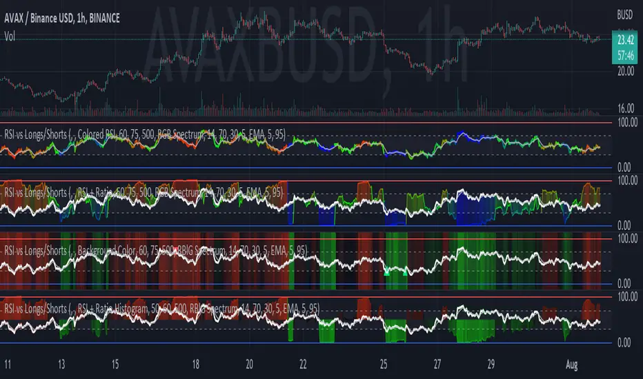 • Colored RSI - RSI plotted with colors based on the Longs/Shorts ratio
