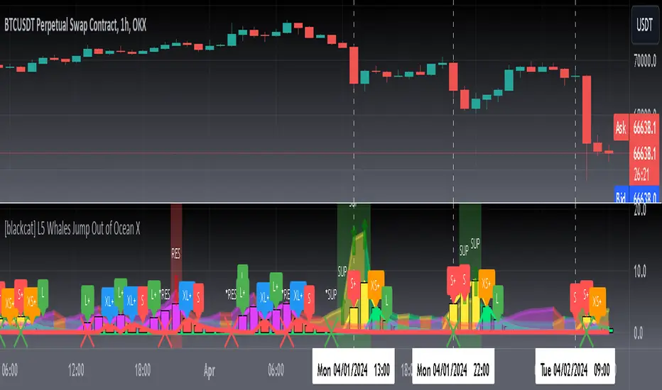 I have been working on developing indicators on how to track the banker funds or whales. In my open source indicators published, you can search for the keywords "Banker" or "Whale" to find and use these indicators. After three years of development and hard work, I have perfectly combined the banker fund/whale mathematical model and the unique Fibonacci space-time indicators. This is named as "L5 Whales Jump Out of Ocean X" indicator that I will introduce today.
