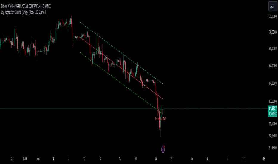 The "Log Regression Channel [UAlgo]" channel is useful for analyzing price trends and volatility in a financial instrument over a specified period. By using logarithmic scaling, this indicator can more effectively handle the wide range of price movements seen in many financial markets, making it particularly valuable for assets with exponential growth characteristics.