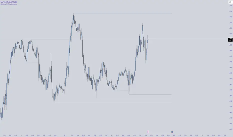 The ICT Liquidity Sweeps Indicator is designed to track liquidity zones in the market areas where stop-losses and pending orders are typically clustered. This indicator marks buyside liquidity (resistance) and sellside liquidity (support), helping traders identify areas where price is likely to manipulate liquidity before making a significant move.