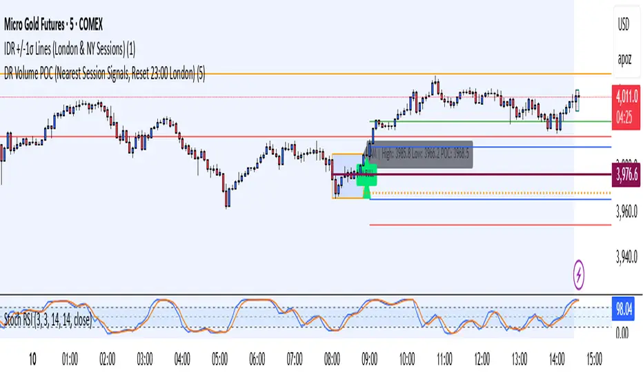 DR volume profile with buy and sell signals are cross on POC. BOS and CHoCH