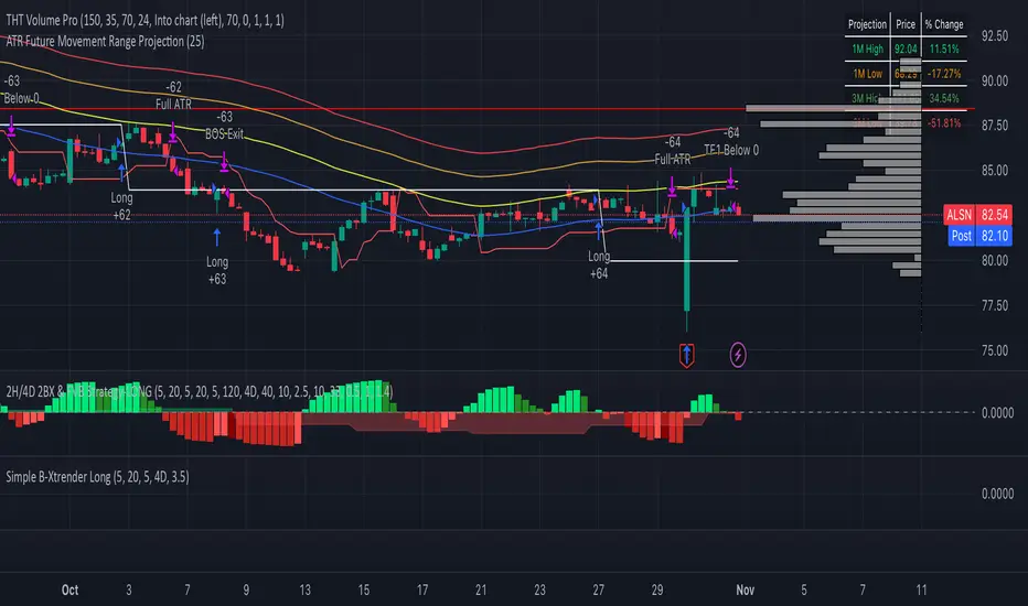 The core of the script is the calculation of the "ShortTermXtrender" indicator. It fetches data from the specified timeframe using the asset's ticker symbol and computes an RSI on the difference between two EMAs of the closing prices (using the first and second short lengths), then subtracts 50 to center it around zero. This results in an oscillator that highlights short-term momentum shifts.