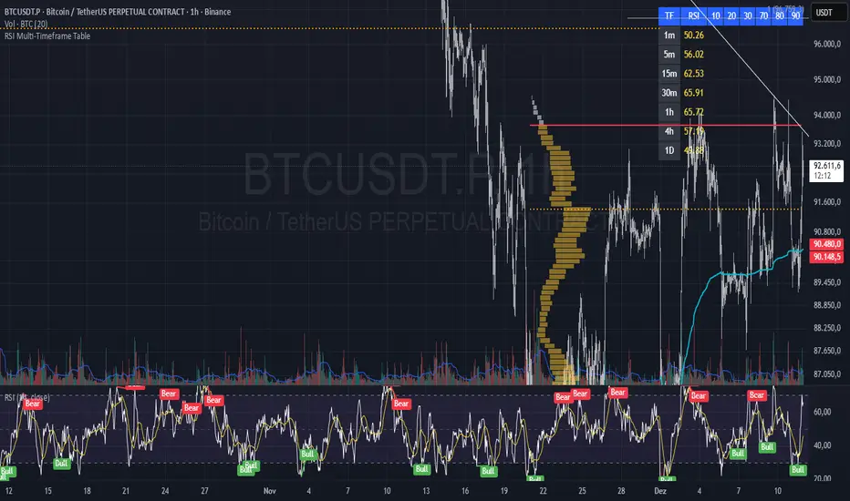 It helps you quickly see whether the RSI is in overbought or oversold zones across different periods (1m, 5m, 15m, 30m, 1h, 4h, and 1D).