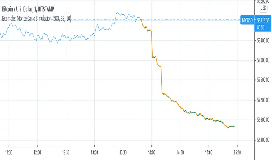 Example execution of Monte Carlo Simulation applied to the markets(this is my interpretation of the algo so inconsistencys may appear).