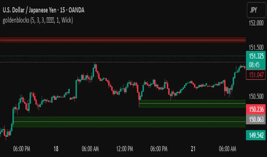 Bullish Order Blocks: Highlights the last down candle before a swing high is breached, indicating potential buying interest.