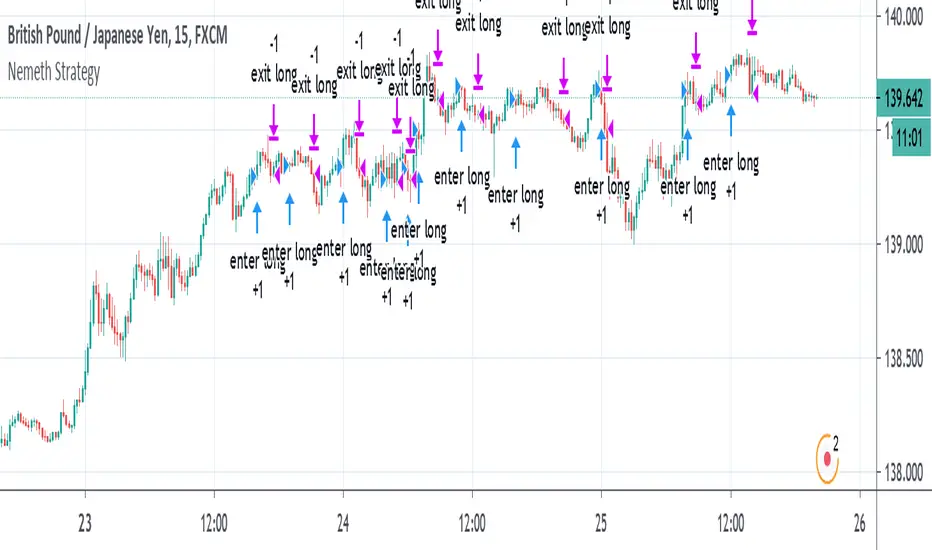 Nemeth is a forex trader that came up with a multi-time frame heiken ashi based strategy that he showed to an older audience crowd on a speaking event video. He seems to boast about his strategy having high success results and makes an astonishing claim that looking at heiken ashi bars instead of regular candlestick bar charts can show the direction of the trend better and simpler than many other slower non-price based indicators. He says pretty much every indicator is about the same and the most important indicator is price itself. He is pessimistic about the markets and seems to think it is rigged and there is a sort of cabal that created rules to favor themselves, such as the inability of traders to hedge in one broker account, and that to win you have to take advantage of the statistics involved in the game. He believes fundamentals, chart patterns such as cup and handle and head and shoulders, and fibonacci numbers don't matter, only price matters. The foundation of his trading strategy is based around heiken ashi bars because they show a statistical pattern that can supposedly be taken advantage of by them repeating around seventy or so percent of the time, and then combines this idea with others based on the lower time frames involved.
