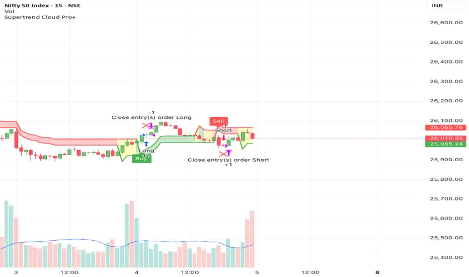 Supertrend Cloud Pro is a next-generation trend + breakout system designed for traders who want clean structure, early breakout confirmation, and disciplined exits.