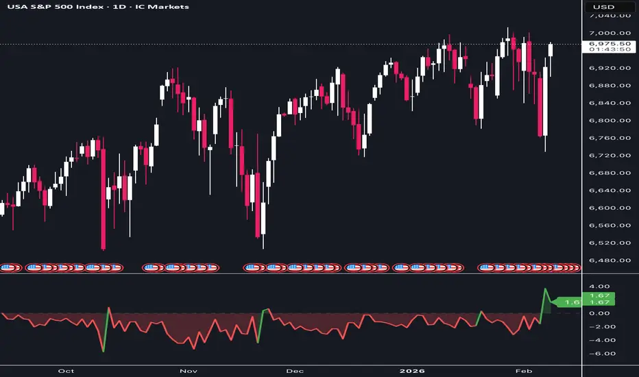 This indicator compares the relative performance of the current asset against a benchmark (e.g. SPY) only within the currently visible chart range.