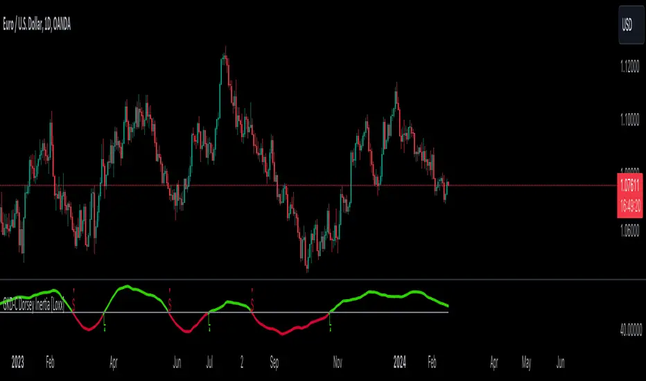 Finally, it combines these two indicators to form an overall Relative Volatility Index (RVI) signal, which is further smoothed over a specified smoothing period to produce the final output, the Inertia Buffer. This buffer aims to provide a more stable and interpretable measure of market volatility and trend strength, potentially aiding in trading decisions.