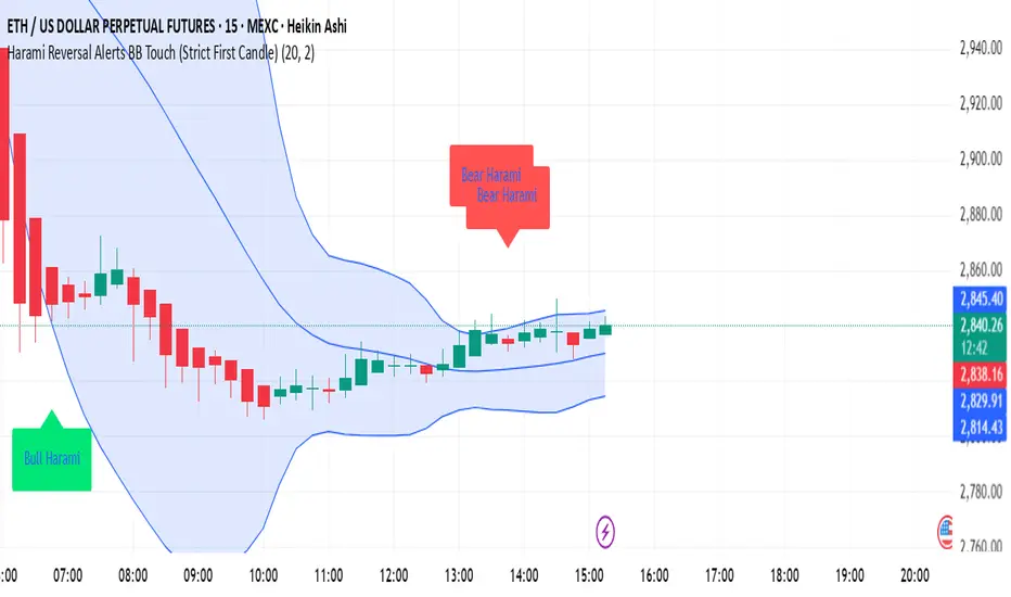 Harami Reversal Alerts BB Touch (Strict First Candle)
