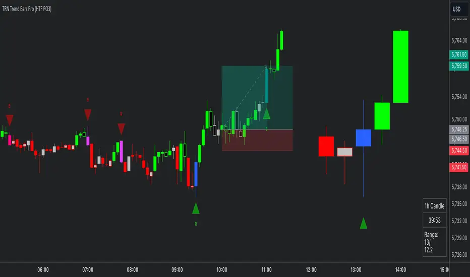 - TRN Trend Bars to see the current trend and reversals (replaces the default chart bars)