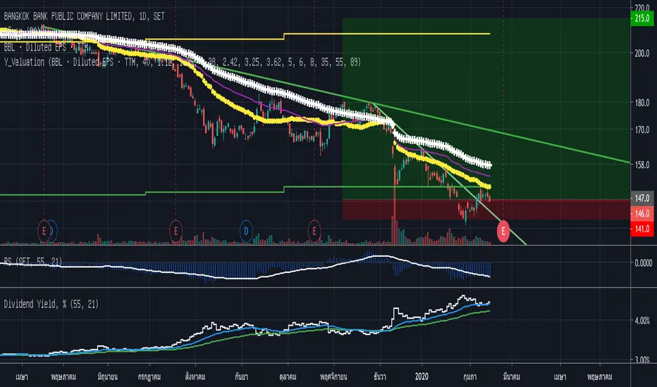 ผมขอยกความดีความชอบของ ท่าน Library Script นะครับ ที่มี Format ของการคำนวณเงินปันผลมาให้ ผมทำเพียงแค่ปัดฝุ่น และ Mod เส้นค่าเฉลี่ยขึ้นมาครับ