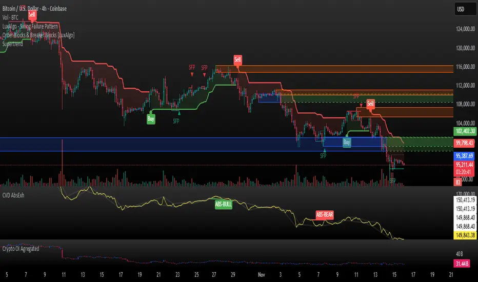 This indicator identifies trading opportunities by analyzing the relationship between price action and Cumulative Volume Delta (CVD) at key pivot points. It implements a professional trading framework that distinguishes between tradeable continuation signals (Absorption) and potential reversal warnings (Exhaustion).