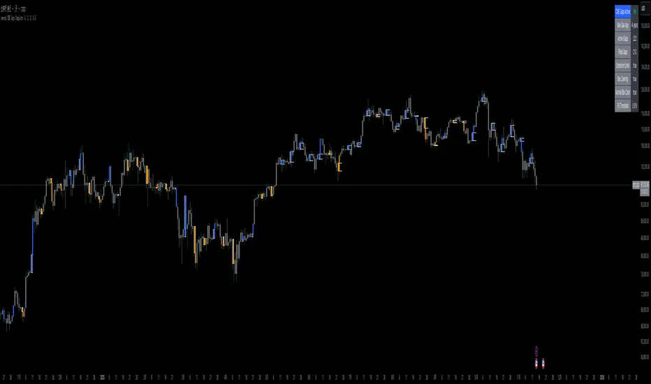Bar Coloring: Automatic color coding where gap bars are highlighted (green/red) while normal trading bars appear gray, creating immediate visual distinction