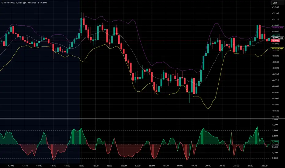 Advanced %B Indicator: A visually enhanced version of Bollinger Bands %B. It features dynamic coloring based on a midline (default 0.5) and intensifies the colors when the value exceeds the high or low thresholds (simulating a band breakout).