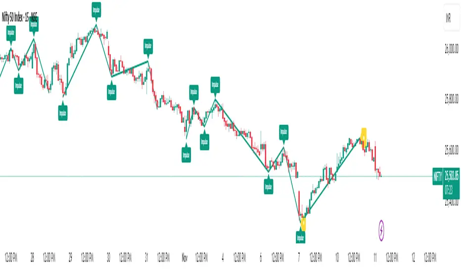 This indicator tracks price structure by connecting significant swing highs and lows—giving a clear, actionable “ZigZag” view of market movement. It automatically maps the underlying price action as alternating impulses (trend legs) and corrections (pullbacks), directly on your chart, for any timeframe.