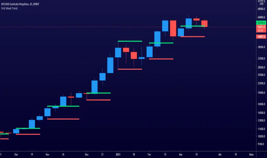 I created this indicator based on one of my ways of analyzing the BTC trend in particular, I noticed that the break of the first weekly candle usually indicates the trend for the rest of the month.