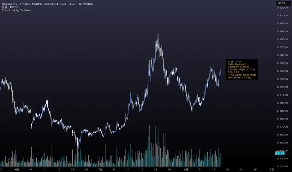 The checklist is a market context tool that consolidates seven key metrics into a single on-chart panel, helping traders quickly gauge market conditions without switching between multiple indicators.