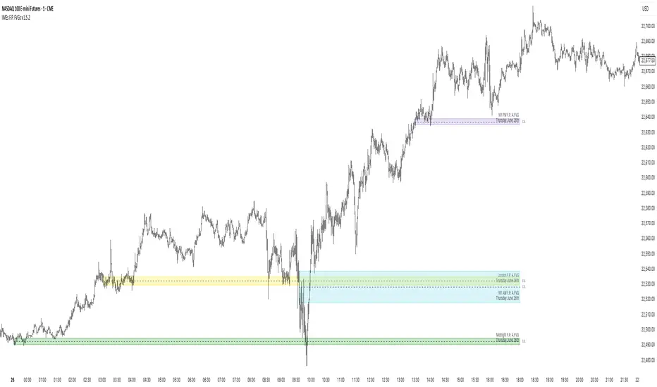 This indicator implements First Presented Fair Value Gap methodology taught by ICT (Inner Circle Trader). The original F.P. FVG concepts, timing rules, and session-based detection are credited to ICT's educational material. This implementation extends those foundational concepts with advanced lifecycle management and institutional alignment features.