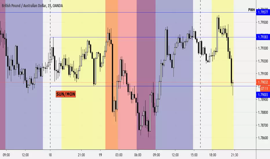 This script lines up the different sessions for New York, Asian, and London. It also have overlap between the sessions and the colors have been adjusted to make it easier to read.