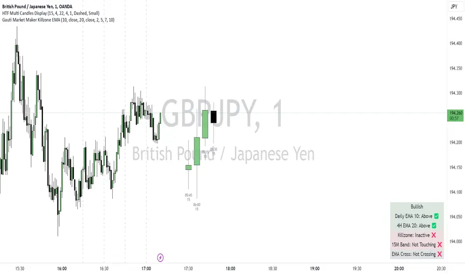 Wait for the price to touch or pull back to the EMA band during the Killzones in the direction of the overall trend: