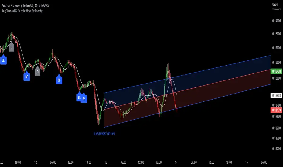 Regression Channel, Candles and Candlestick Patterns by Monty