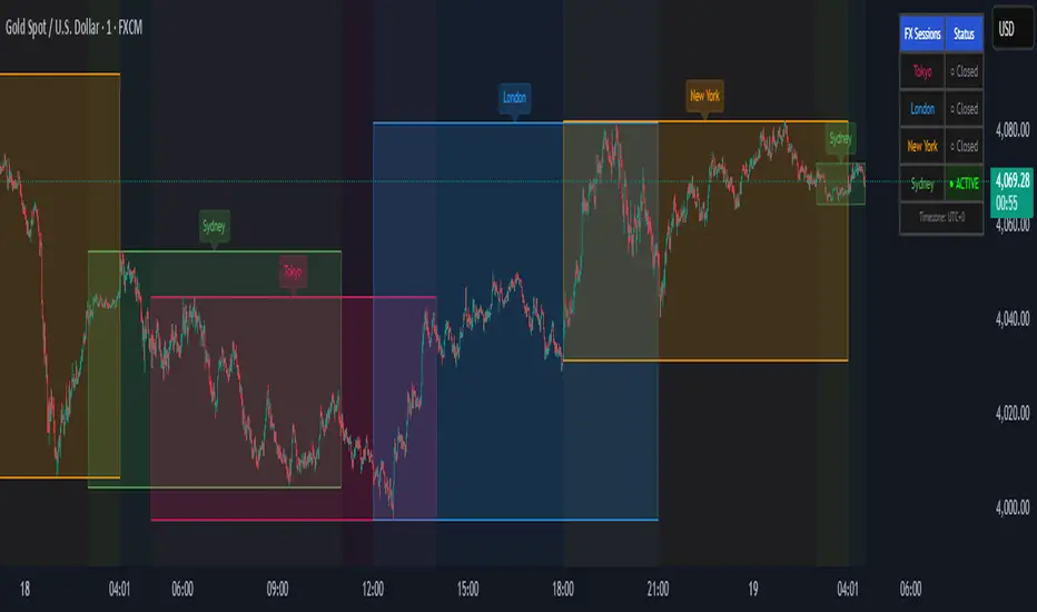The indicator tracks all four primary forex trading sessions with precision: