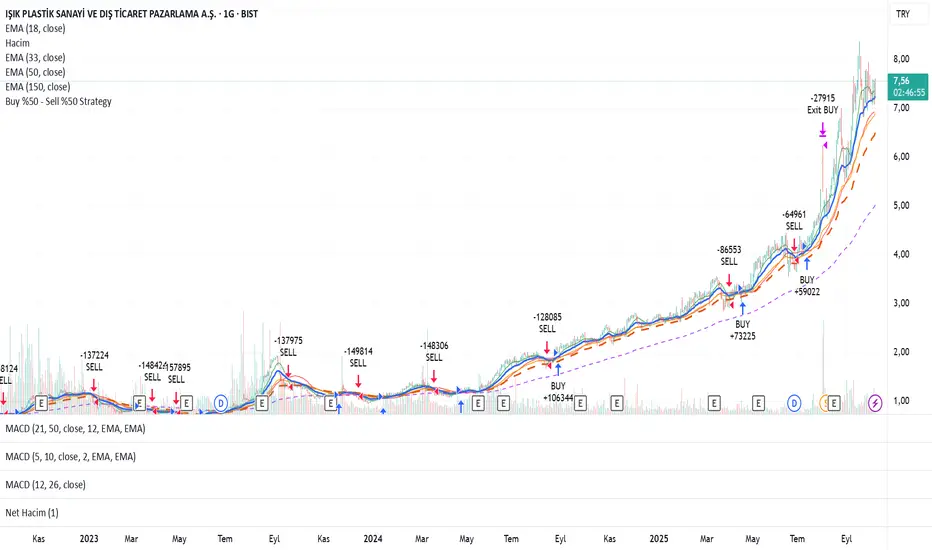 If the medium-term trend (EMA 33) also crosses above the long-term (EMA 50),