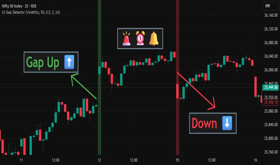 IU Gap Detector is a smart and flexible gap detection indicator designed to identify Bullish and Bearish price gaps using three different measurement methods: Volatility (ATR), Fixed Points, and Percentage-based gaps.