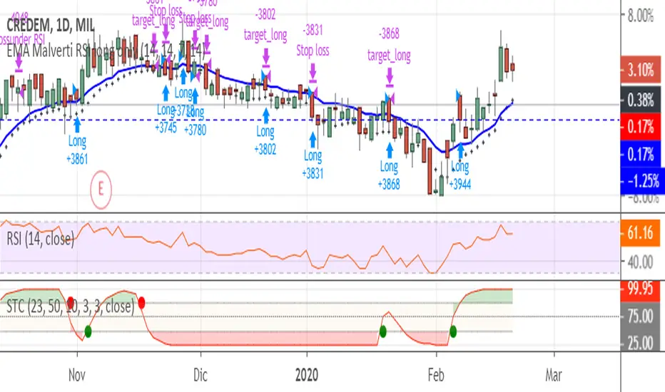 BUY when prices crosses over Ema on long period (we suggest, however, Ema long = Ema fast period = no. 14)