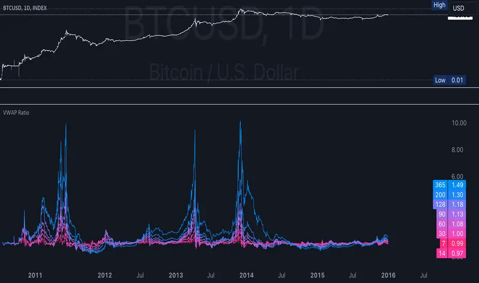 VWAP Ratio indicator. Inspired by the chart of the same name from woobull.