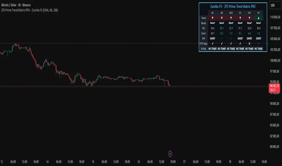 ZFX Prime Trend Matrix PRO is a multi-timeframe trend dashboard designed by Zumiko FX to give traders an instant, complete market overview.