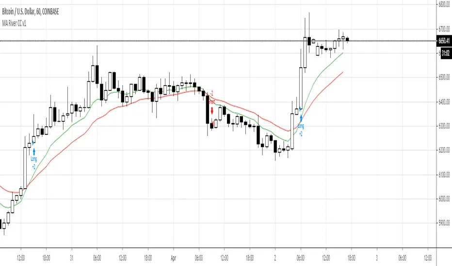 Close Long when when bar's body below river