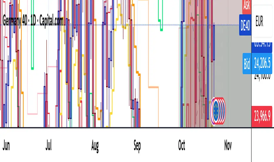 Trend-following indicator combining two moving averages on Low/High (LMA/HMA) to form the Activator: the line switches LONG/SHORT with Close&Reverse logic (on close) or intrabar (more reactive). Includes ATR StopLine, R:R-based TP, Multi-Timeframe filter (HTF updates only on new HTF bars), an HUD, and ready-to-use alerts.