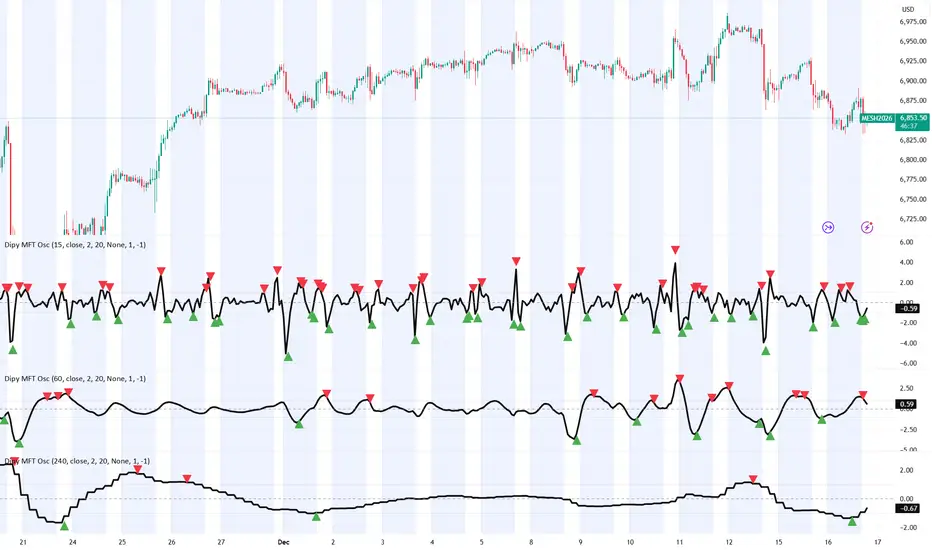 Dipy the MFT Super OscillatorA multi-timeframe bandpass oscillator for mean-reversion and "buy the dip" strategies.