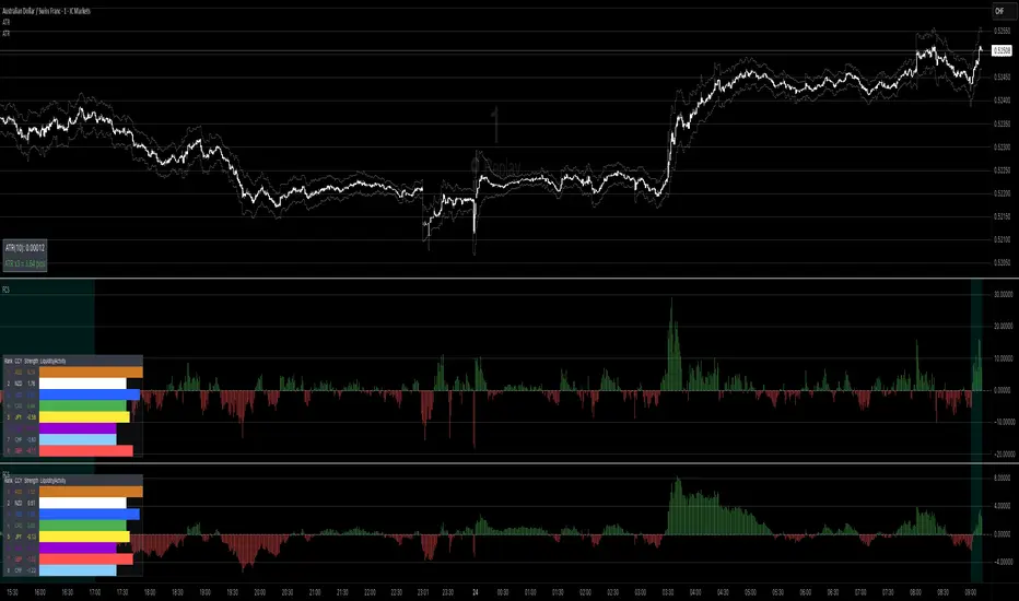This indicator helps you quickly see which currencies are strong, which are weak, and whether the pair you are trading has a clear directional bias. It also highlights trading sessions and can notify you when strong moves or imbalances appear.