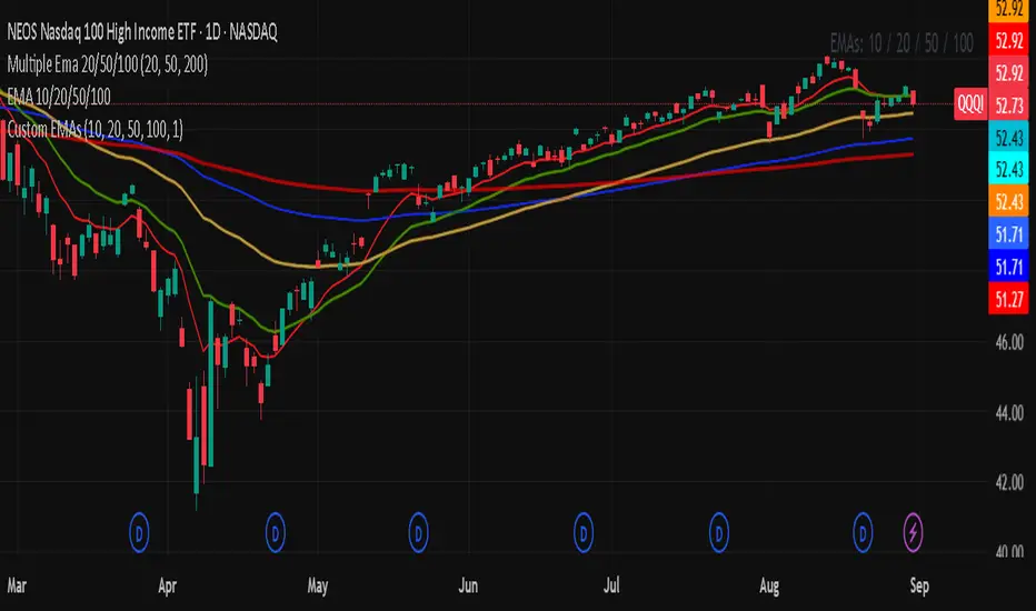 Customizable EMA indicator. Fully adjustable with inputs so you can change EMA lengths and colors directly from the indicator settings panel.