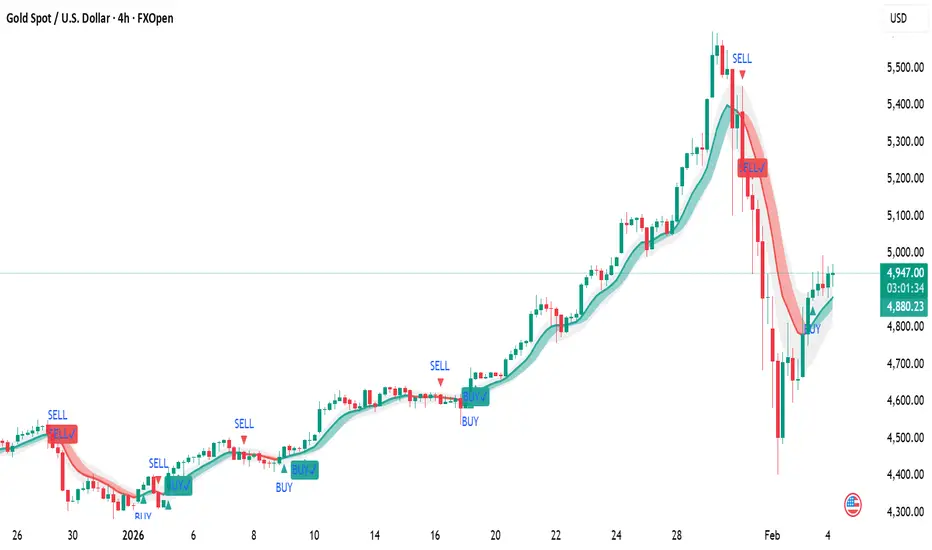 It is an advanced trend-following indicator that uses smoothed Heikin-Ashi data instead of raw price to filter market noise and highlight high-quality trends.