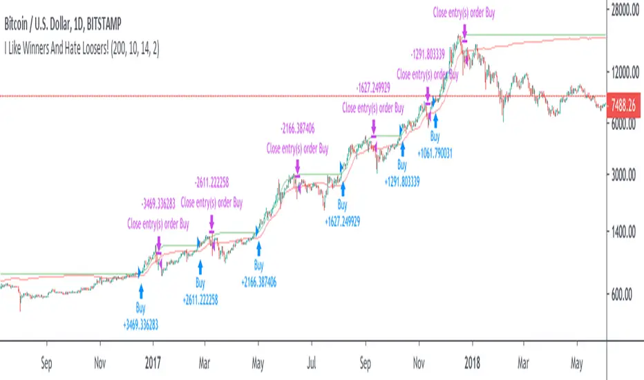 This simple long only strategy aims to be in trending markets, maximizing win/loss ratio and keep drawdown low (at the expense of net profit).