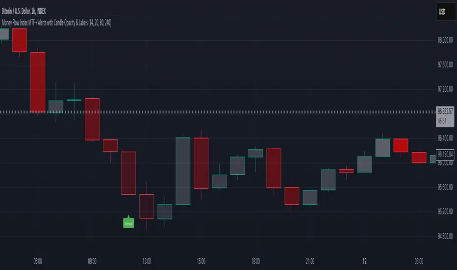 تم تحديثه Money Flow Index MTF + Alerts with Candle Opacity & Labels